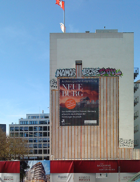 Anlässlich einer Neubebauung am Hopfenmarkt findet eine 12-monatige Grabung der Bodendenkmalpflege des Archäologischen Museums Hamburg statt. Das Gebiet rund um den Hopfenmarkt birgt ein für Hamburg einzigartiges Bodendenkmalensemble.